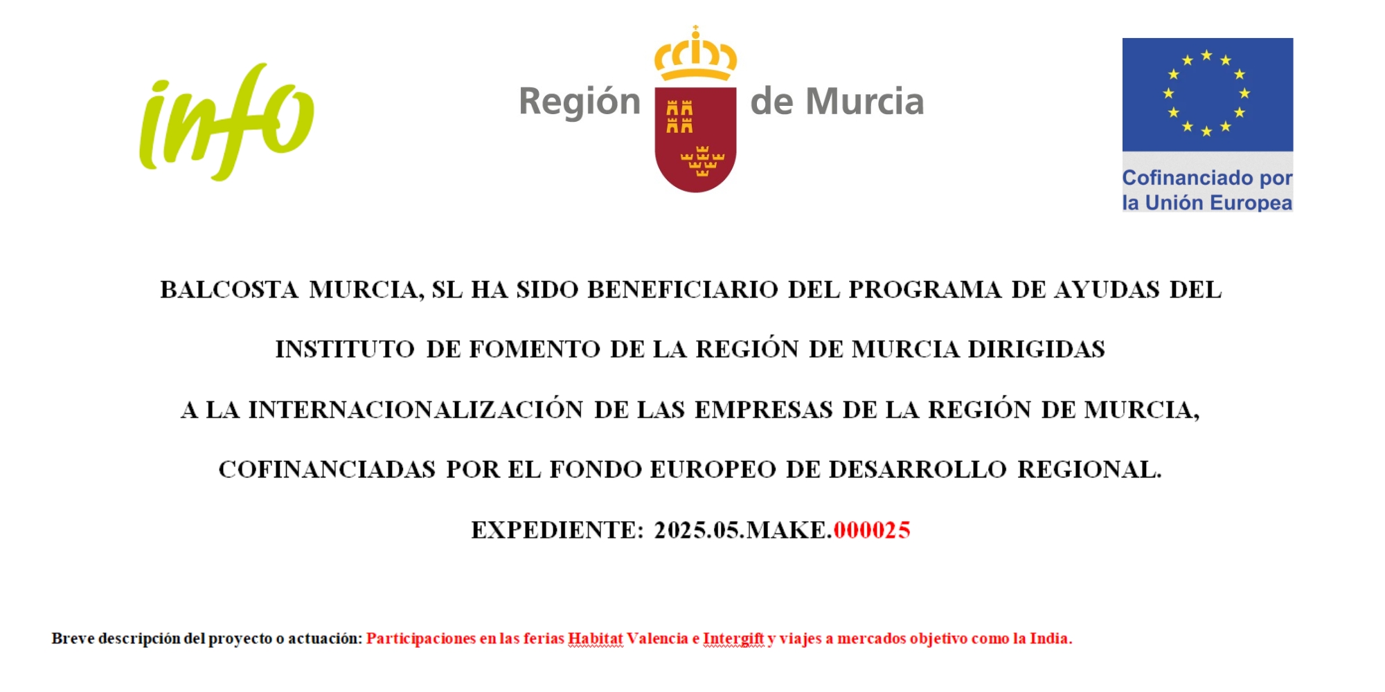 BALCOSTA MURCIA, SL HA SIDO BENEFICIARIO DEL PROGRAMA DE AYUDAS DEL